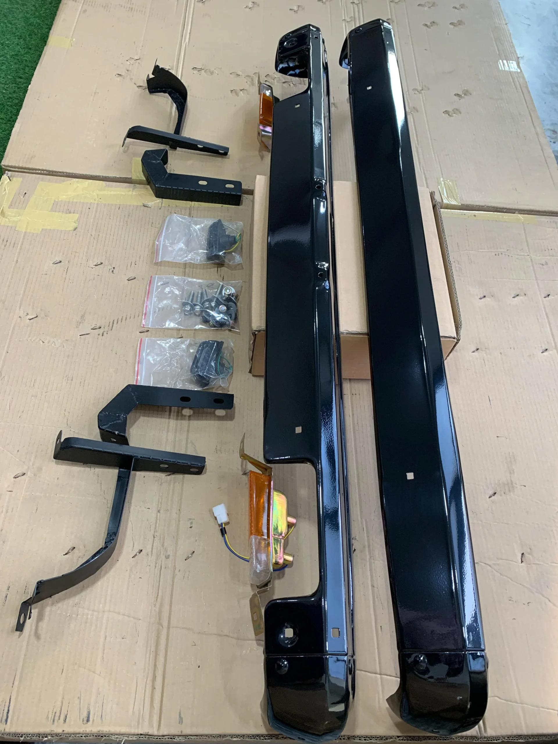 Setup Contains : Front Bumper – Back Bumper – 4 Brackets – 4 Corner Caps – 2 Indicator – 2 Licence Plate lights – all fitting bolts.